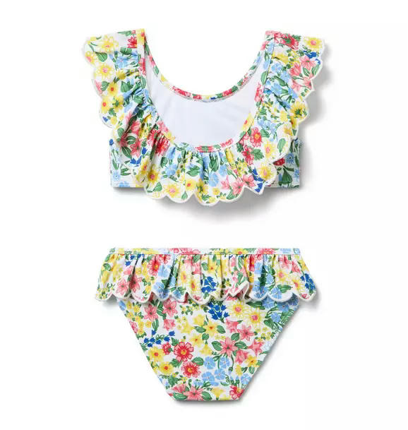 Our floral swimsuit is the perfect pick for getaways near and far. Featuring ruffle details, embroidered scalloped trim and UPF 50+ sun protection to keep them stylishly safe. Responsibly made with recycled polyester fabric.