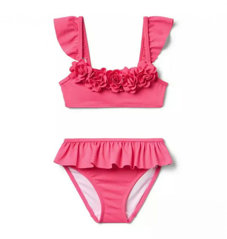 At the beach or by the pool, our swimsuit blooms with style. Featuring rosette details and ruffles too, plus UPF 50+ sun protection to keep them stylishly safe. Responsibly made with recycled polyester fabric.