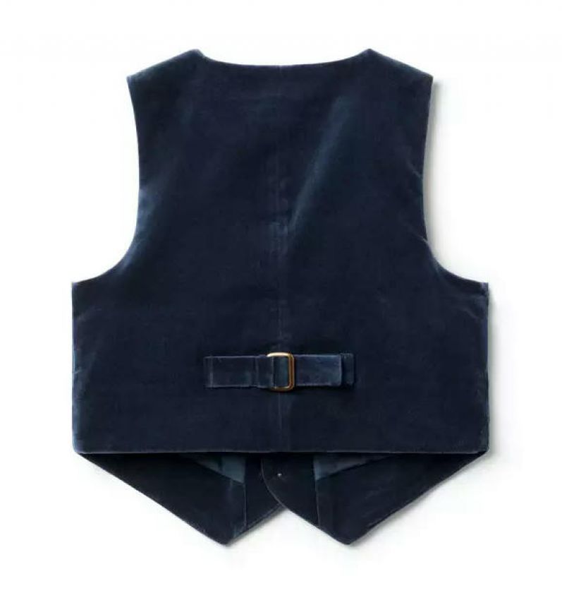 Our best-dressed vest in plush velvet that goes with just about everything. Detailed with a buckle back and welt pockets too.