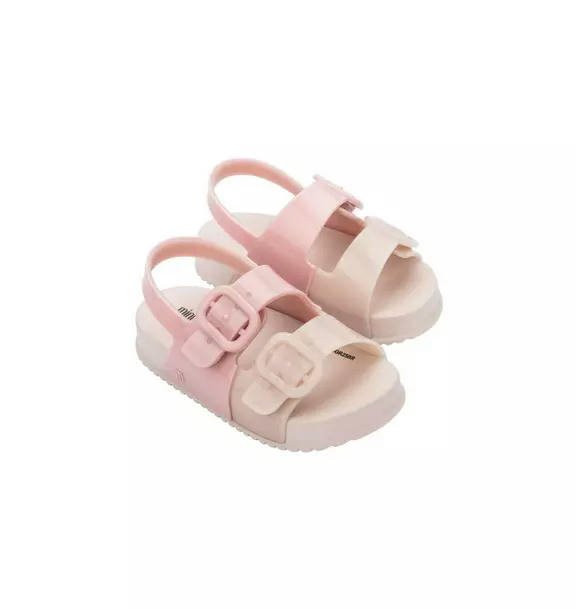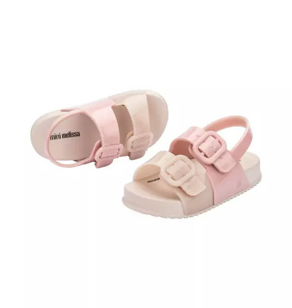 Buckle up! The Mini Melissa Cozy Sandal comes with adjustable top buckles, a heel strap, and a lightweight Melflex lug sole to keep your mini's feet snug, comfy, and ready to play. Mix and match with the same colors or choose a hue to let their imagination (and feet) run wild.