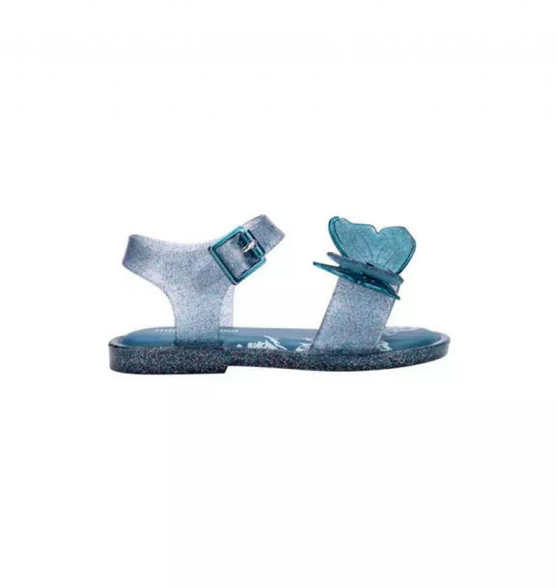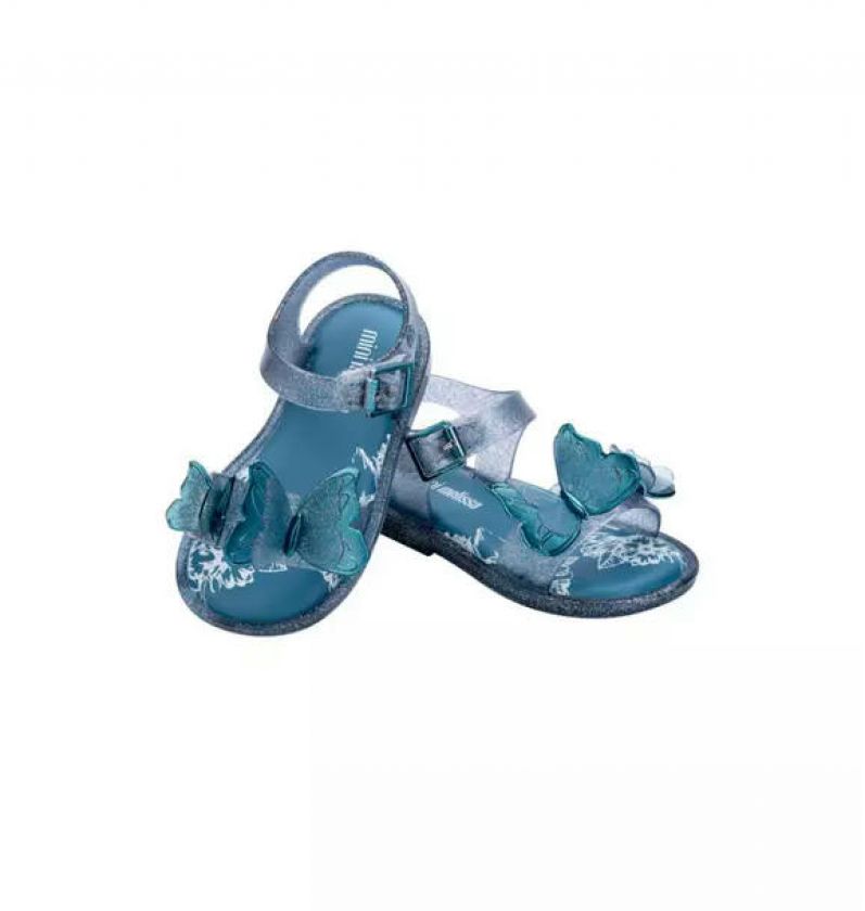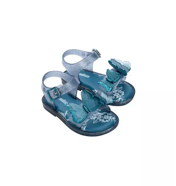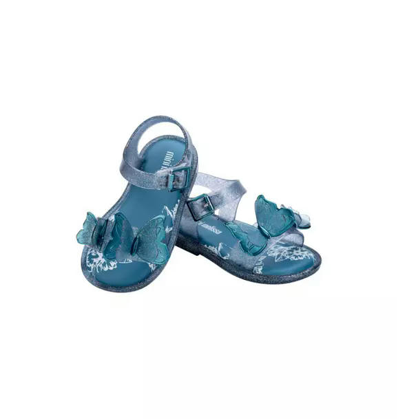 Give your little some wings to fly. Introducing the Mini Melissa Fly Sandal. This classic sandal is decorated with a layered butterfly appliqué as a reminder to your mini that she can fly as high as she wants.
