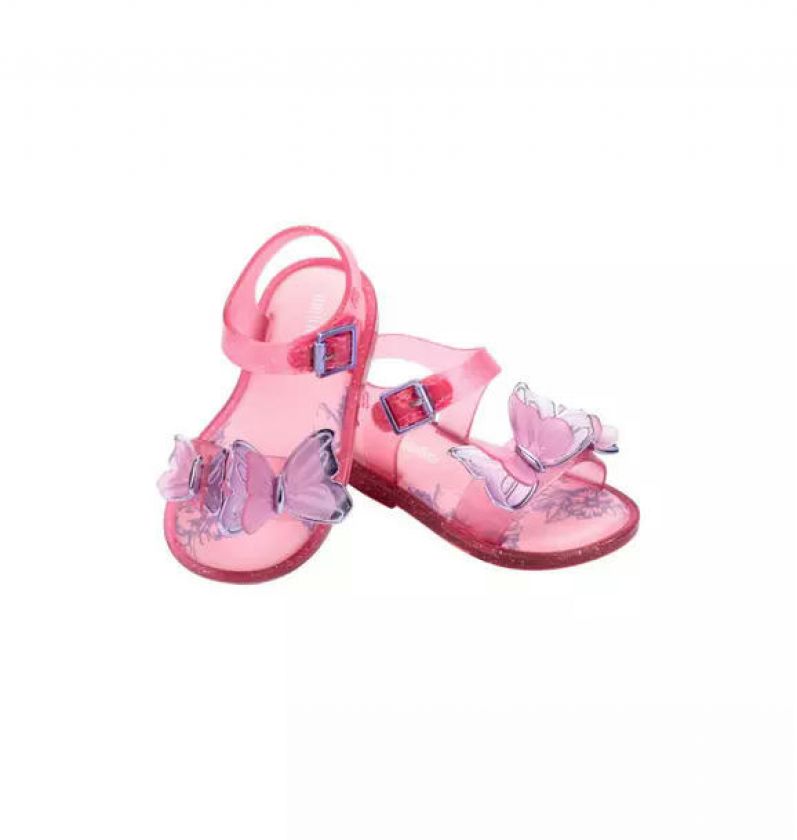 Give your little some wings to fly. Introducing the Mini Melissa Fly Sandal. This classic sandal is decorated with a layered butterfly appliqué as a reminder to your mini that she can fly as high as she wants.