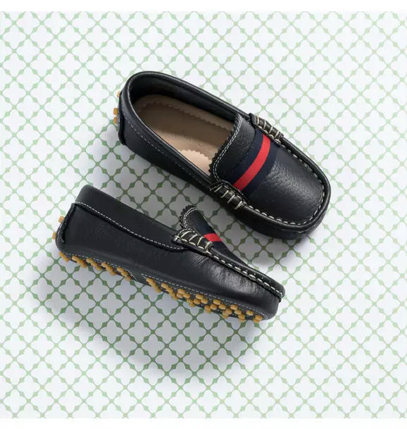 Get your little one ready for a Riviera-inspired adventure with our stylish and comfortable Club Loafers! Made from supple leather in rich, natural tones, these loafers are perfect for strolling around the club or playing in the playground. Hand-stitched with breathable leather lining and insole, they ensure maximum comfort. The extra cushion and soft sheepskin lining keep feet fresh and dry all day. Rubber pebbles on the outer sole and ankle support provide excellent grip and stability. Navy and red stripes across the upper add a nautical charm, making these loafers versatile for any outfit.