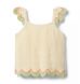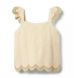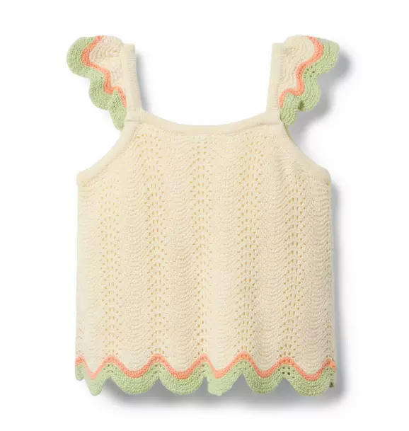 A close-knit favorite for every kind of getaway. Our crochet top features a contrast scalloped hem and flutter sleeves too.