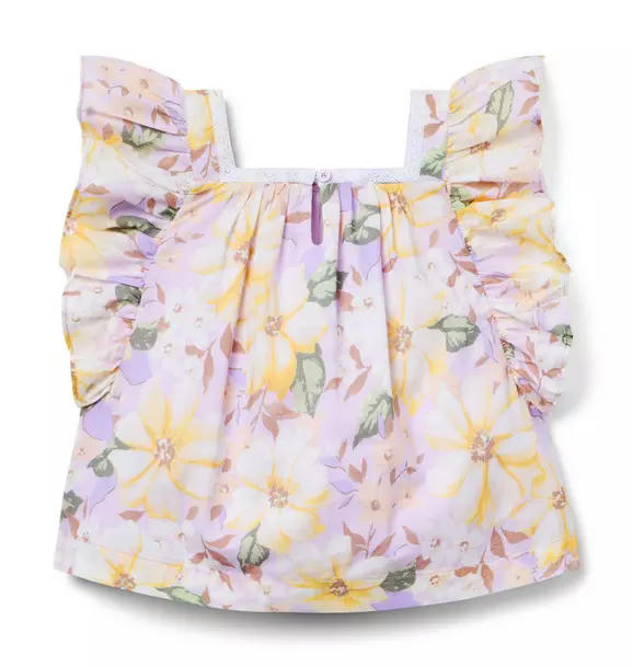 A freshly picked favorite featuring sun-kissed florals. Designed in pure cotton with ruffle sleeves and lace trim at the neck. Wear it your way.