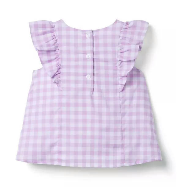 A top favorite for sunny days. Our a-line top in pure cotton features allover gingham, ruffle sleeves and shirred details too.
