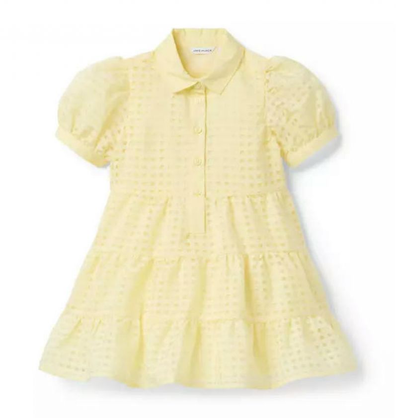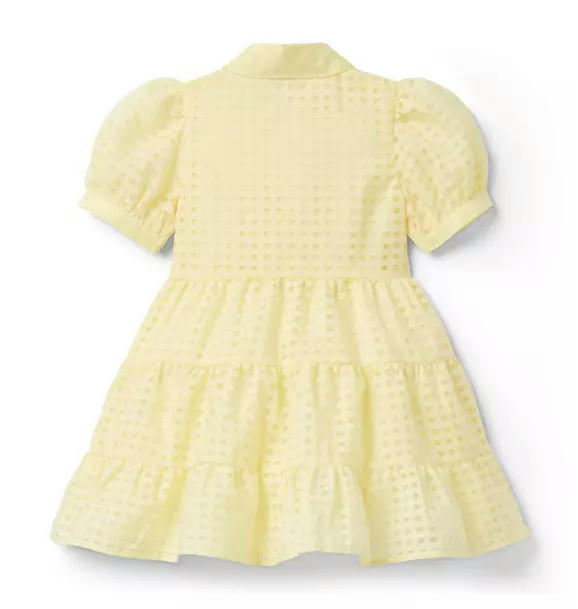 Stand out in style with our dress in allover check organza. Featuring puff sleeves, a contrast collar and a ruffle hem for extra frills.
