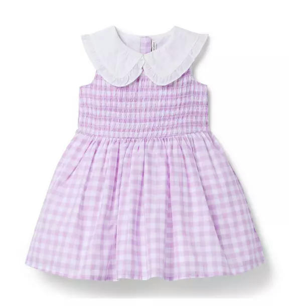 Twirl your way through the day in classic gingham. Our pure cotton dress features a lace-trimmed collar and smocked details too.