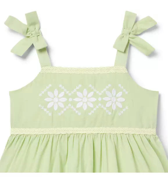 All of our favorite finishing touches for this dress in airy cotton voile. Featuring floral embroidery, lace trim and bows at the straps, it's perfect for any occasion or just because.