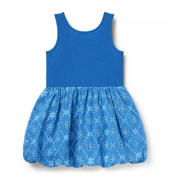 A trendsetting dress in eye-catching eyelet. Featuring a bubble hem silhouette and a ribbed bodice, it's an instant wardrobe favorite.