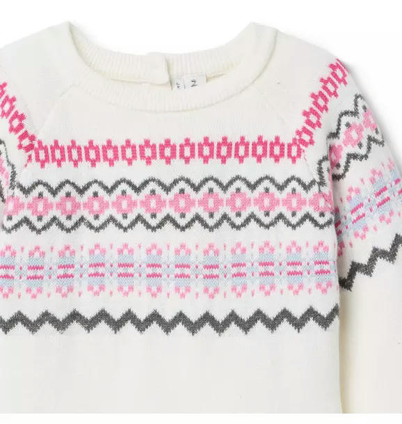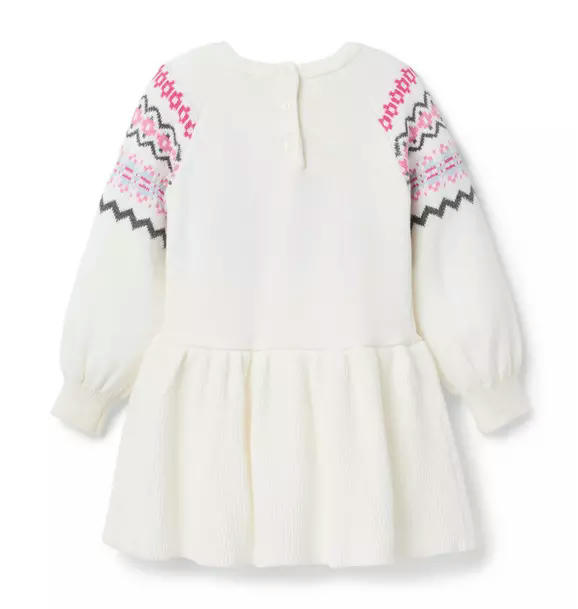 Twirl your way through sweater season. With classic Fair Isle details, puffed sleeves and ribbed trim, our cozy dress is a winter wonder.