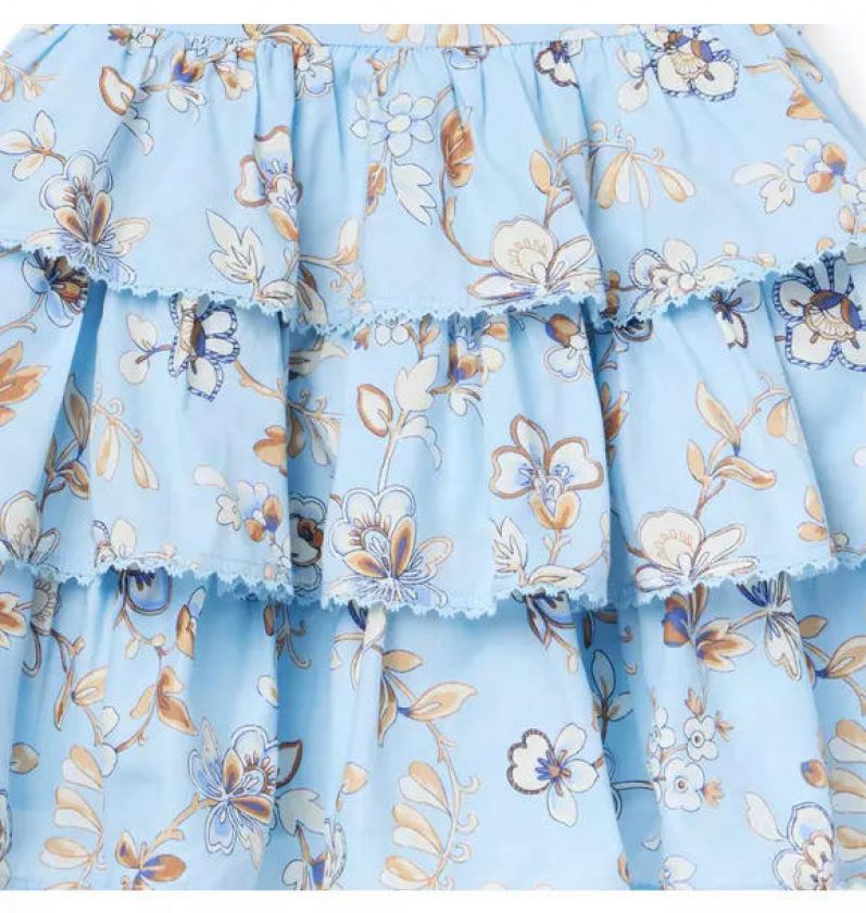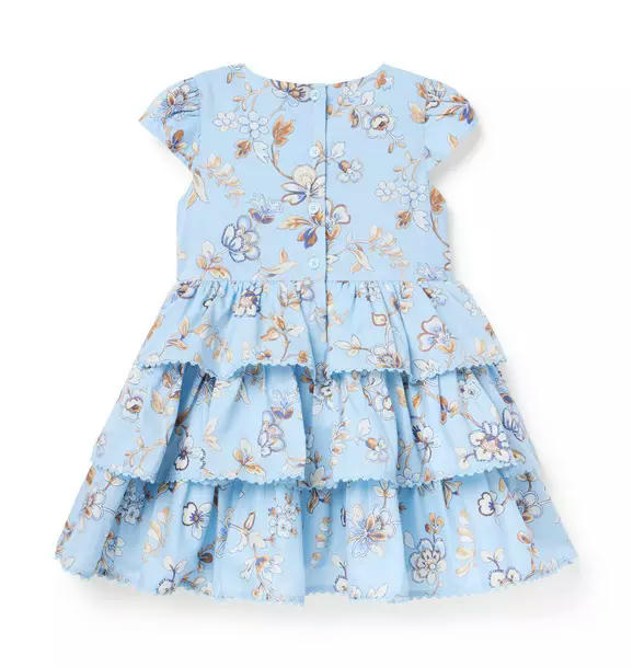 It’s a season of style in our pure cotton dress. Designed with allover florals, tiered ruffles and crochet lace trim.