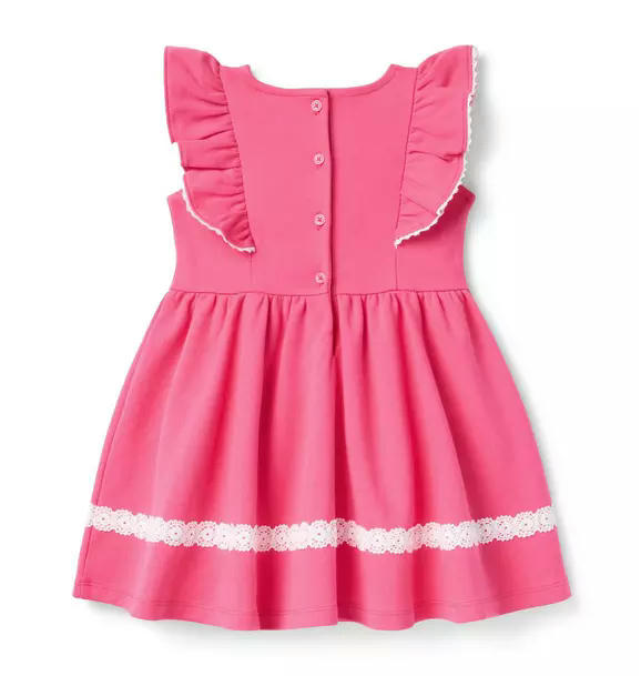 Our signature soft stretch ponte dress has all the details to love, from the lace trim to the ruffles. It's just right for any occasion.