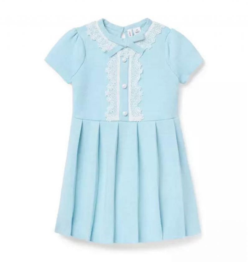 Stitched with the precision of a true atelier, our soft sweater dress is designed to make a statement. Featuring floral lace trim, pearlized buttons, perfect pleats and a bow detail to tie it all together.