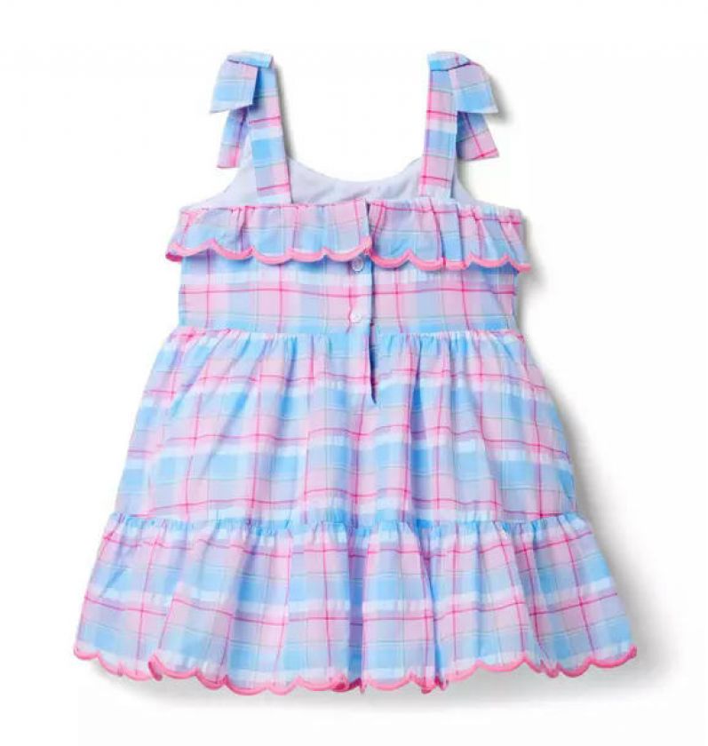 Mad about plaid? Us too. This dress checks all the style boxes with its ruffles, bow straps and scalloped trim too.