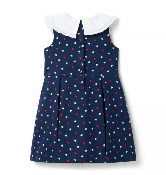 A fashionable favorite for Valentine's Day or just because. Our soft ponte dress features an allover heart print, a contrast ruffle-trimmed collar and pleated details too.