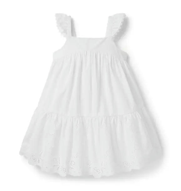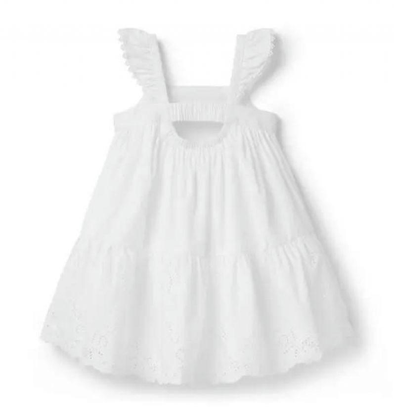 Twirl your way through sunny days in our A-line dress featuring embroidered florals. With lace-trimmed flutter sleeves and a cutout back too.