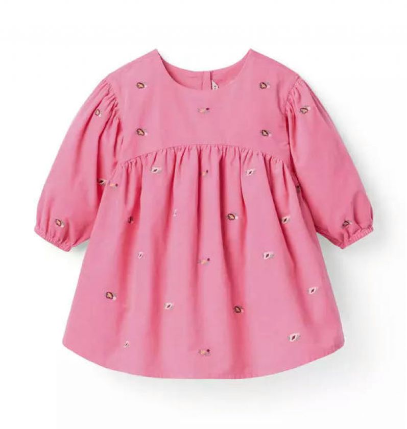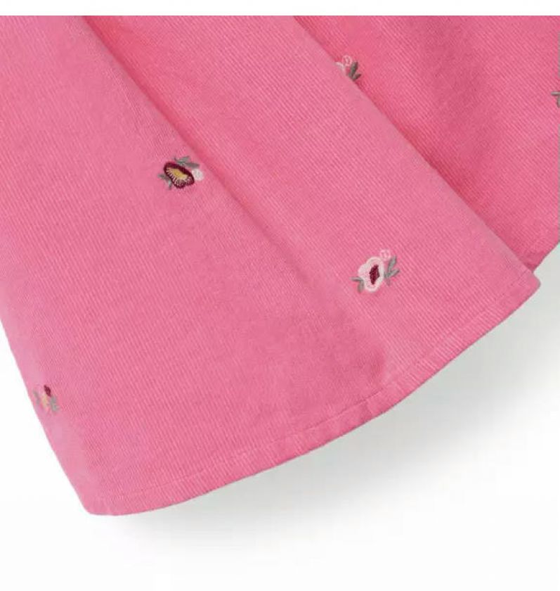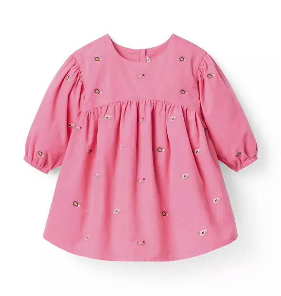 A favorite for the season, detailed with allover embroidered florals. Designed in soft cotton corduroy with puff sleeves too.