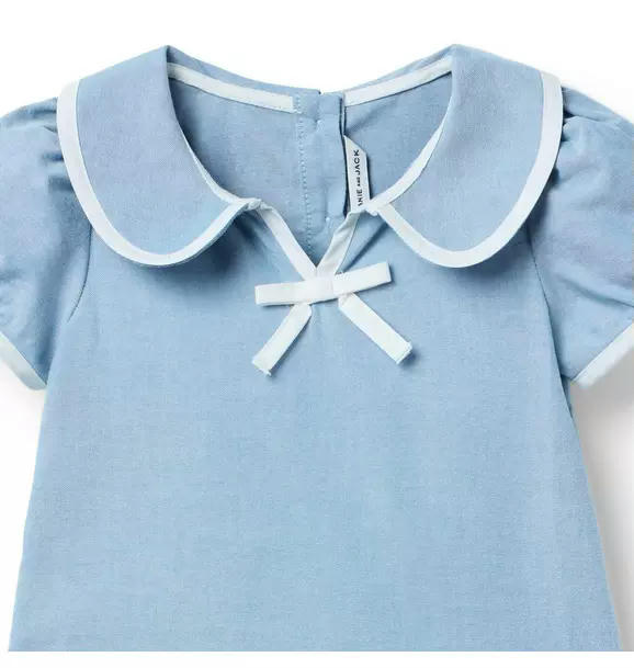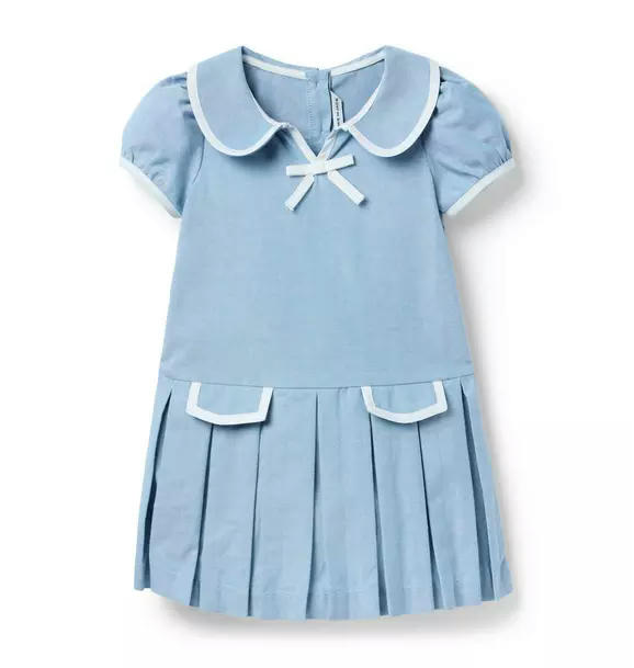 Dress for the day in details to love—from the pleated skirt to the contrast trim and the puff sleeves too. All topped off with a bow, of course.