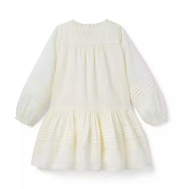 With pleats and precision, this dropwaist dress is a wardrobe classic designed with details that are truly unforgettable—from the intricate lace trim to the crisp pintucks and the ruffle collar too.