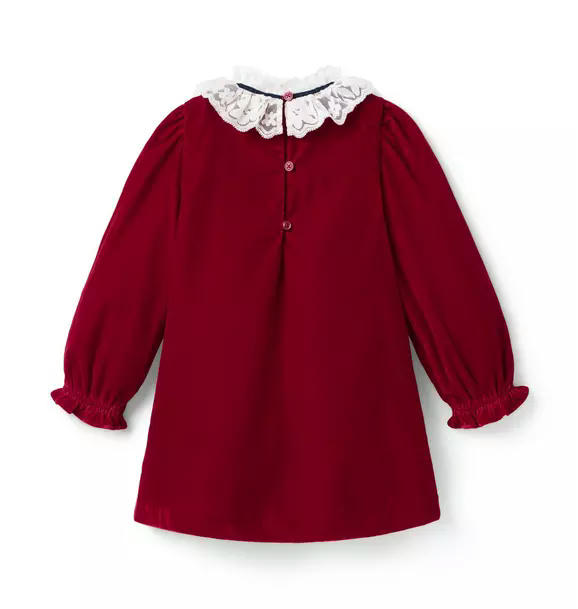 For holiday moments or just because, our velvet dress is always a standout. Featuring a delicate lace collar, a ribbon bow detail and ruffle cuffs for extra frills.