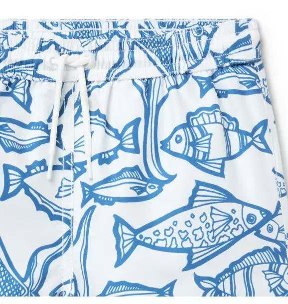 It’s a sea of style with our fish print swim trunk. Featuring UPF 50+ sun protection, a touch-close back pocket and embroidered eyelets to let water drain out. Responsibly made with recycled fabric.
