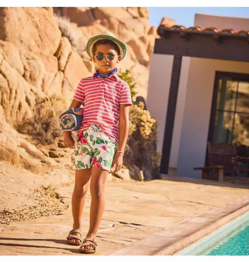 Make a splash on every vacation in our tropical floral swim trunk. With UPF 50+ sun protection, a touch-close back pocket and embroidered eyelets to let water drain out. Responsibly made with recycled fabric.