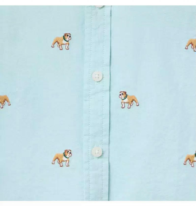 Our shirt is their wardrobe's new best friend, thanks to allover embroidered bulldogs. In crisp Oxford cotton with tailored details to love.