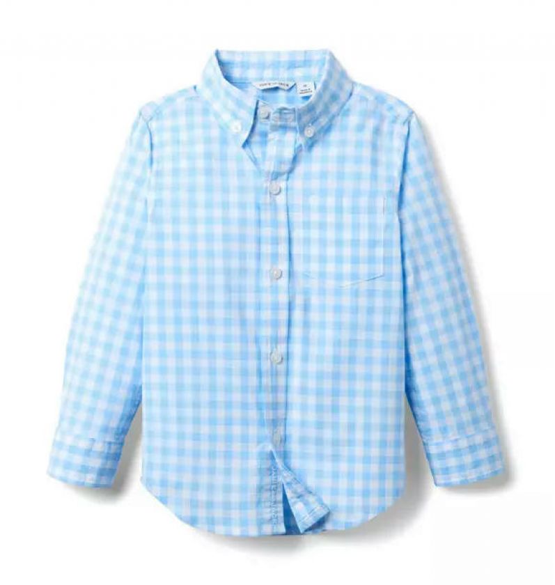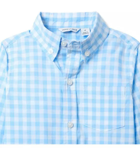 Their look is squared away with our gingham shirt in pure cotton poplin. Featuring tailored details, like collar point buttons and a chest pocket.