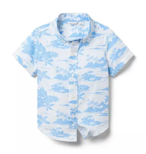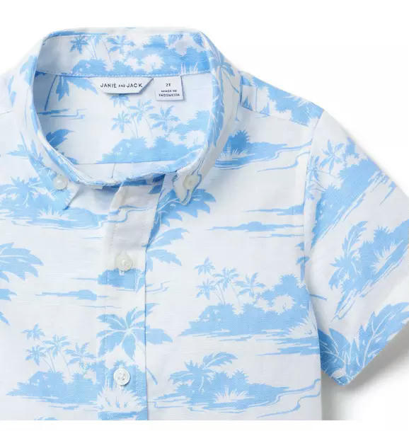 Our breezy linen-cotton shirt, featuring a getaway-ready island toile print and tailored details to love. It's perfect for sunny adventures or just because.