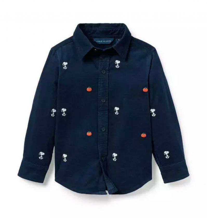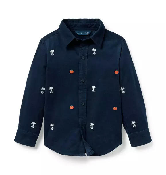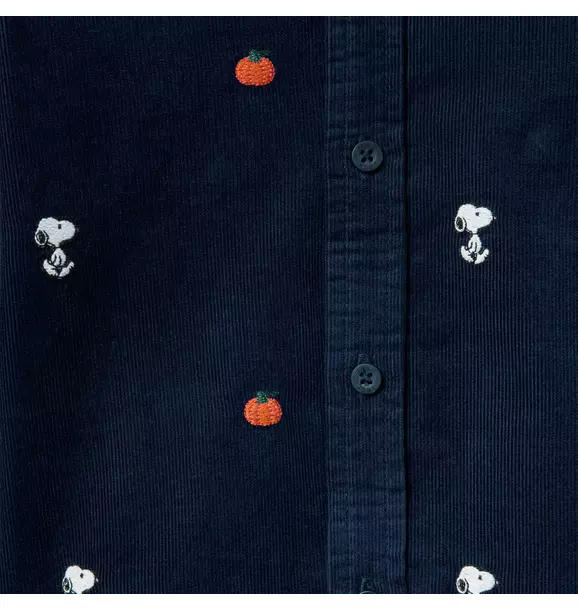 Just right for crisp days, our corduroy shirt features allover embroidered Snoopy and pumpkin icons. Perfect on its own or layered up.