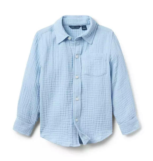 A style classic that pairs perfectly with all their favorites. Designed in lightweight cotton gauze with roll cuffs and a chest pocket too.
