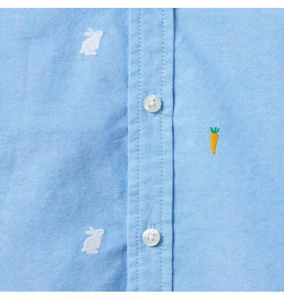 Our shirt is hopping with style, thanks to embroidered bunnies and carrots. In crisp Oxford cotton with tailored details to love.
