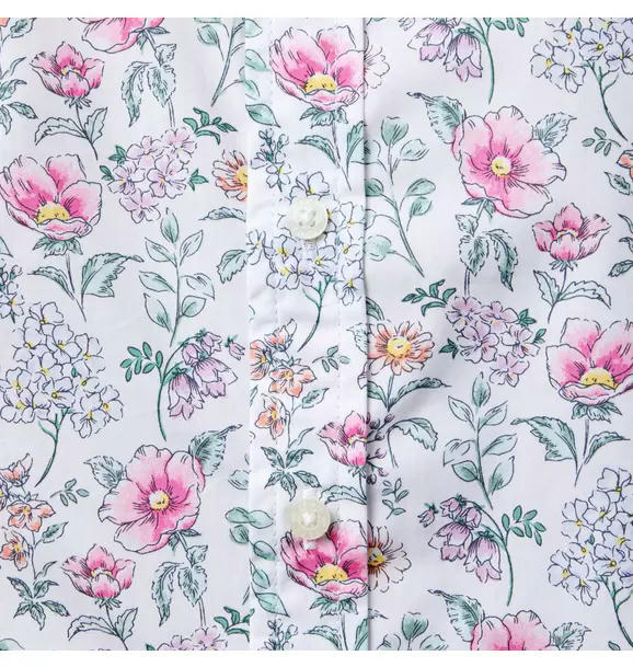 Allover florals for this favorite in crisp cotton poplin. With tailored details to love.