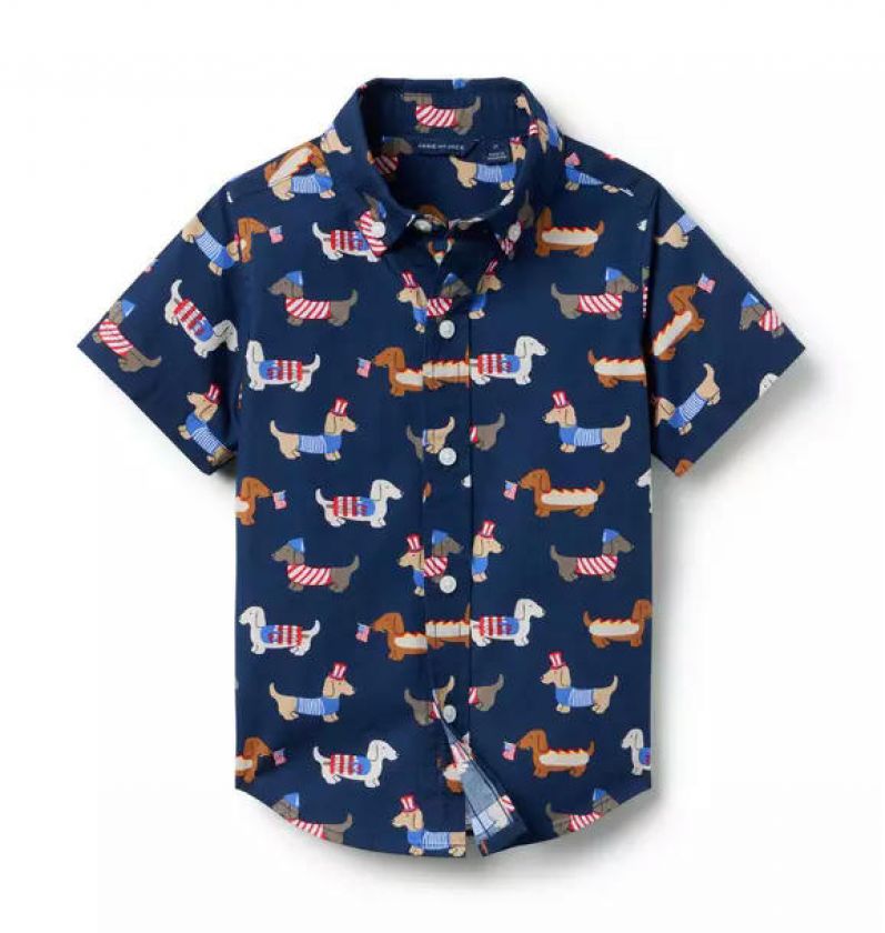 Parade your style with our crisp cotton poplin shirt. With playful patriotic pups and tailored details to love, like collar point buttons.