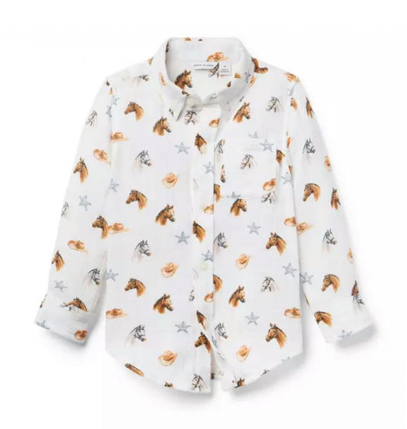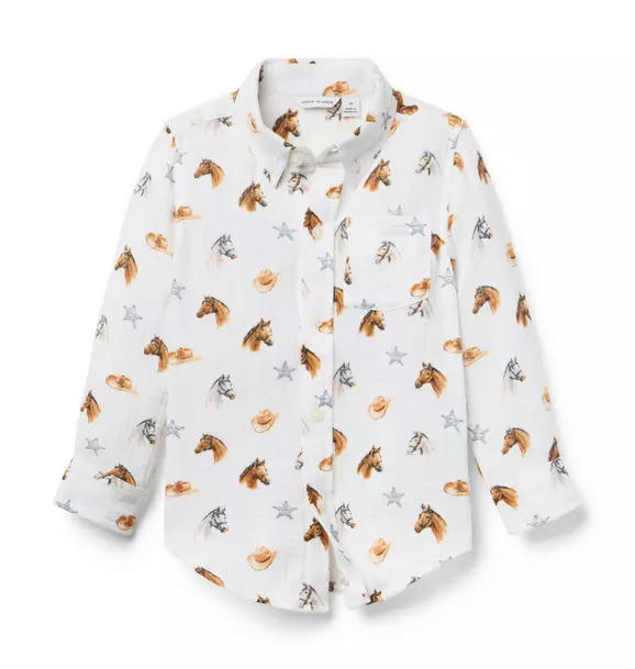 Western style for any occasion with our shirt in pure cotton gauze. Featuring an allover horse print and tailored details to love, like collar point buttons and a chest pocket.