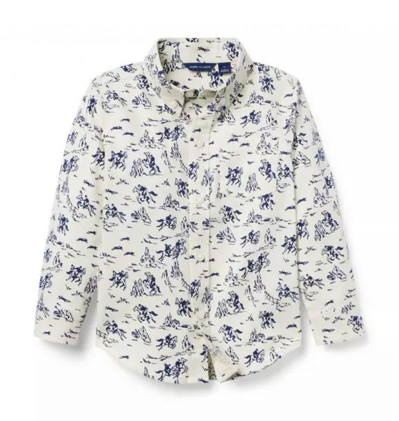 Lasso trending style with our shirt in pure, soft cotton twill. We love the allover Western toile and tailored details, like the chest pocket and collar point buttons.