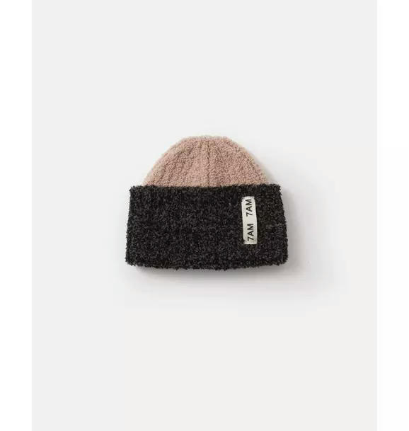 2-Tone Ribbed Beanie Fuzzy - Pecan/Black Melange