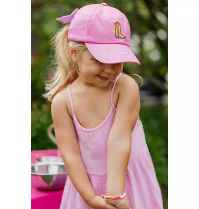 For the little girl who’s never too far from her favorite pair of cowgirl boots, the Cowboy Boot Bow Baseball Hat offers a pretty-in-pink accessory to top off her western-inspired style. She’ll be ready to rodeo with this cute cap featuring a fun, feminine gingham seersucker bow on the back.