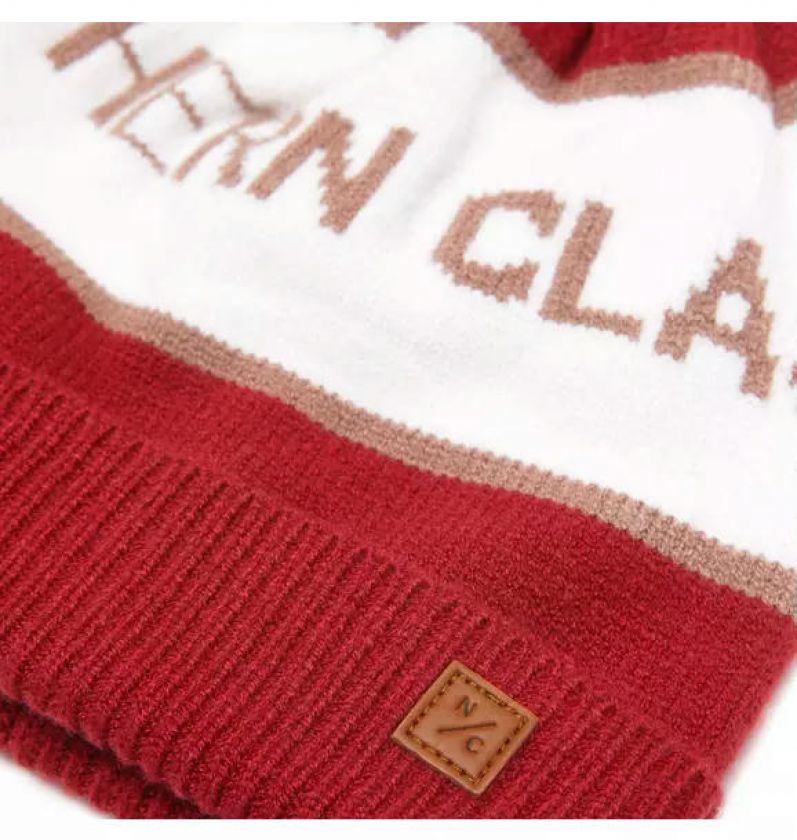 Knit Pom Hat in Heritage Red and Winter White