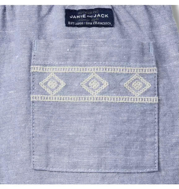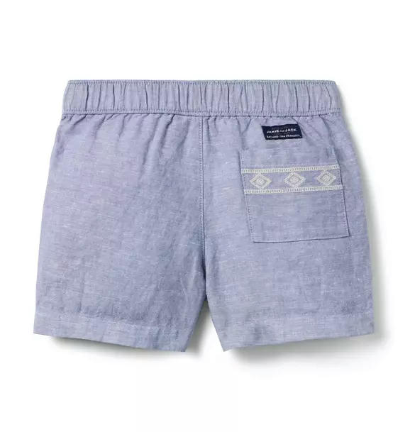 Take the shortcut to sunny day style in our breezy linen-cotton short in a new shorter length. With an embroidered back pocket and an easy elastic waist too.