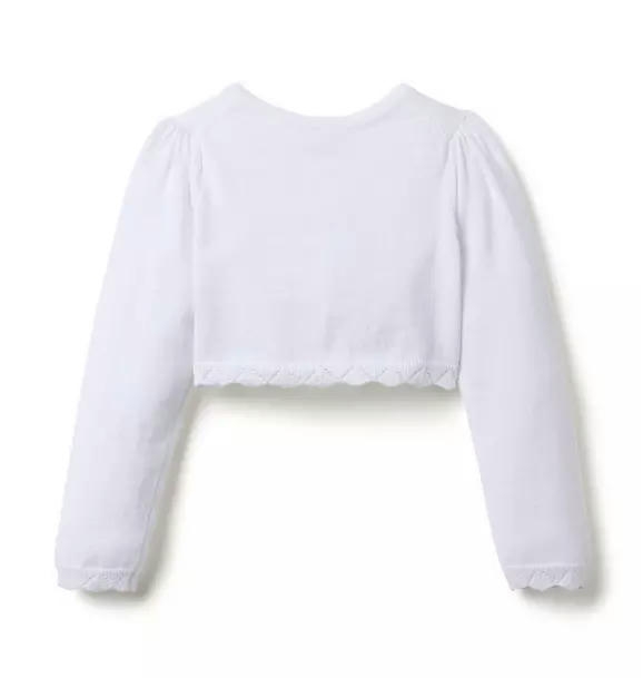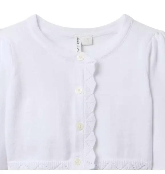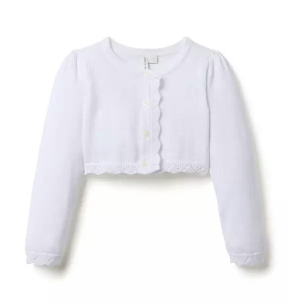 A favorite for layering your way. Our cardigan in soft, pure cotton features scalloped details, crochet trim and a trending cropped silhouette.