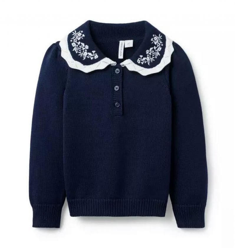 Embroidered Floral Collar Sweater