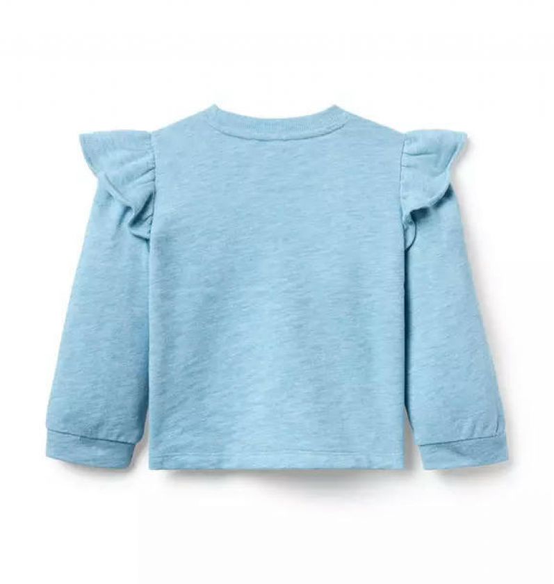 Give a warm welcome to our sweatshirt in soft French terry. Featuring an embroidered Howdy detail at the neck, ruffles at the shoulder and ribbed details.