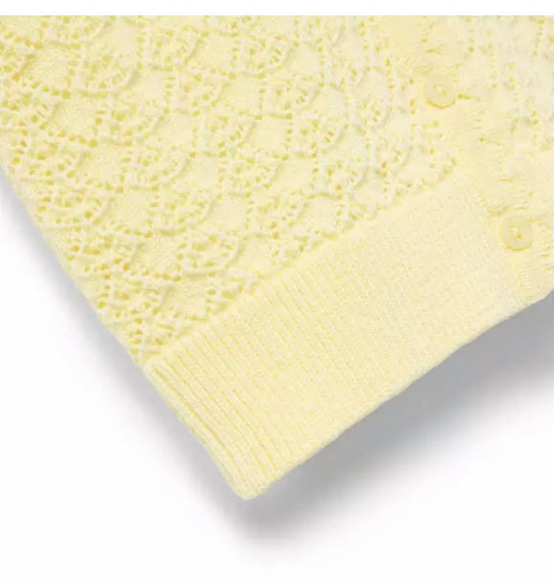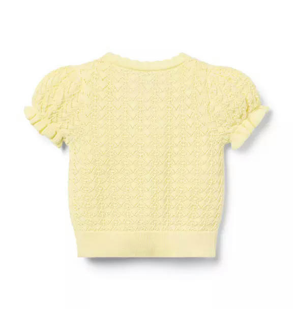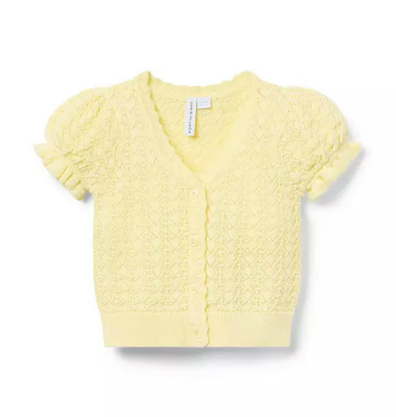 The perfect puff sleeve cardigan to wear with everything. Featuring allover pointelle and ruffle details at the cuffs.