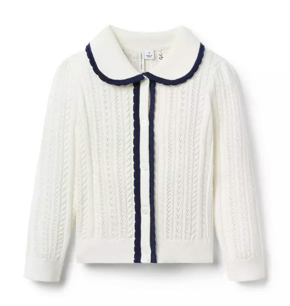 A classic cardigan with chic details to love. Designed with allover pointelle, scalloped trim and a preppy collar too.
