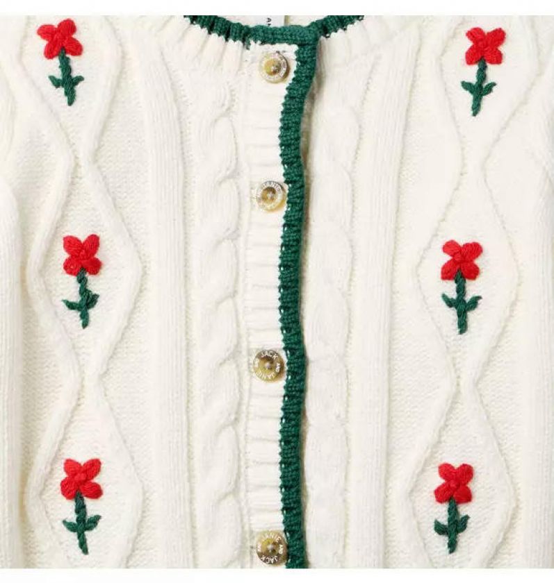 A classic cardigan to wear everywhere, all season long. Designed with embroidered florals, cable knit details and ribbed trim.