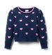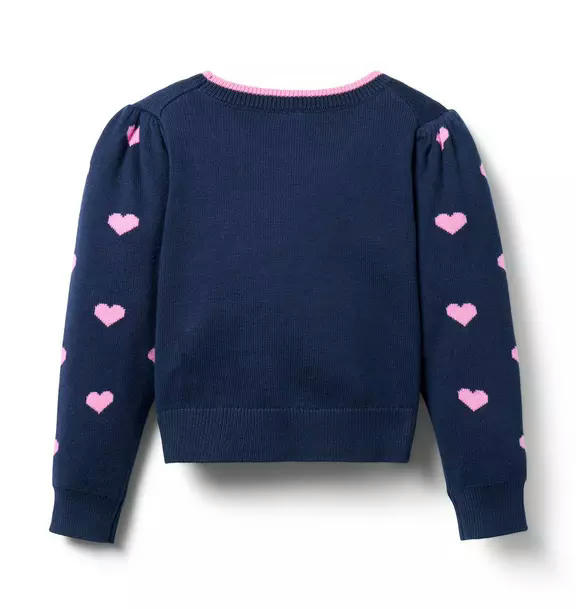 We’ve set our hearts on this cozy sweater. With allover heart details, contrast tipping and puff sleeves, it's one to love for Valentine's Day or just because.
