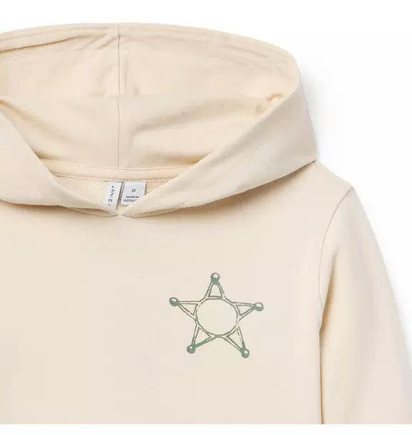 Rein in their look with our western-inspired hoodie. Designed in soft French terry with a screenprinted cowboy graphic at the back, sheriff's star detail at the chest and ribbed details too.