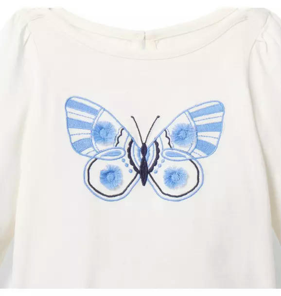 Let style take flight with our butterfly tee. Designed in pure cotton with embroidered details and fringe applique too.